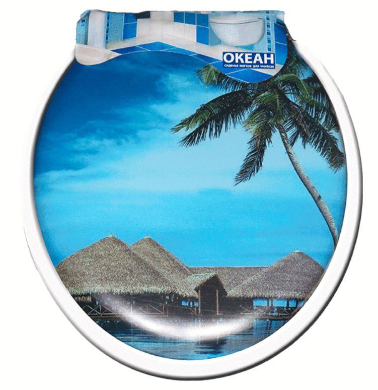 / Сиденье для унитаза мягкое, голубое с рисунком ОКЕАН